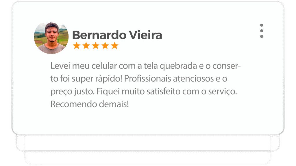 - Retire no Mesmo Dia: Para a maioria dos reparos, seu celular estará pronto para ser retirado em poucas horas. Você sai com seu aparelho funcionando e com nossa garantia.